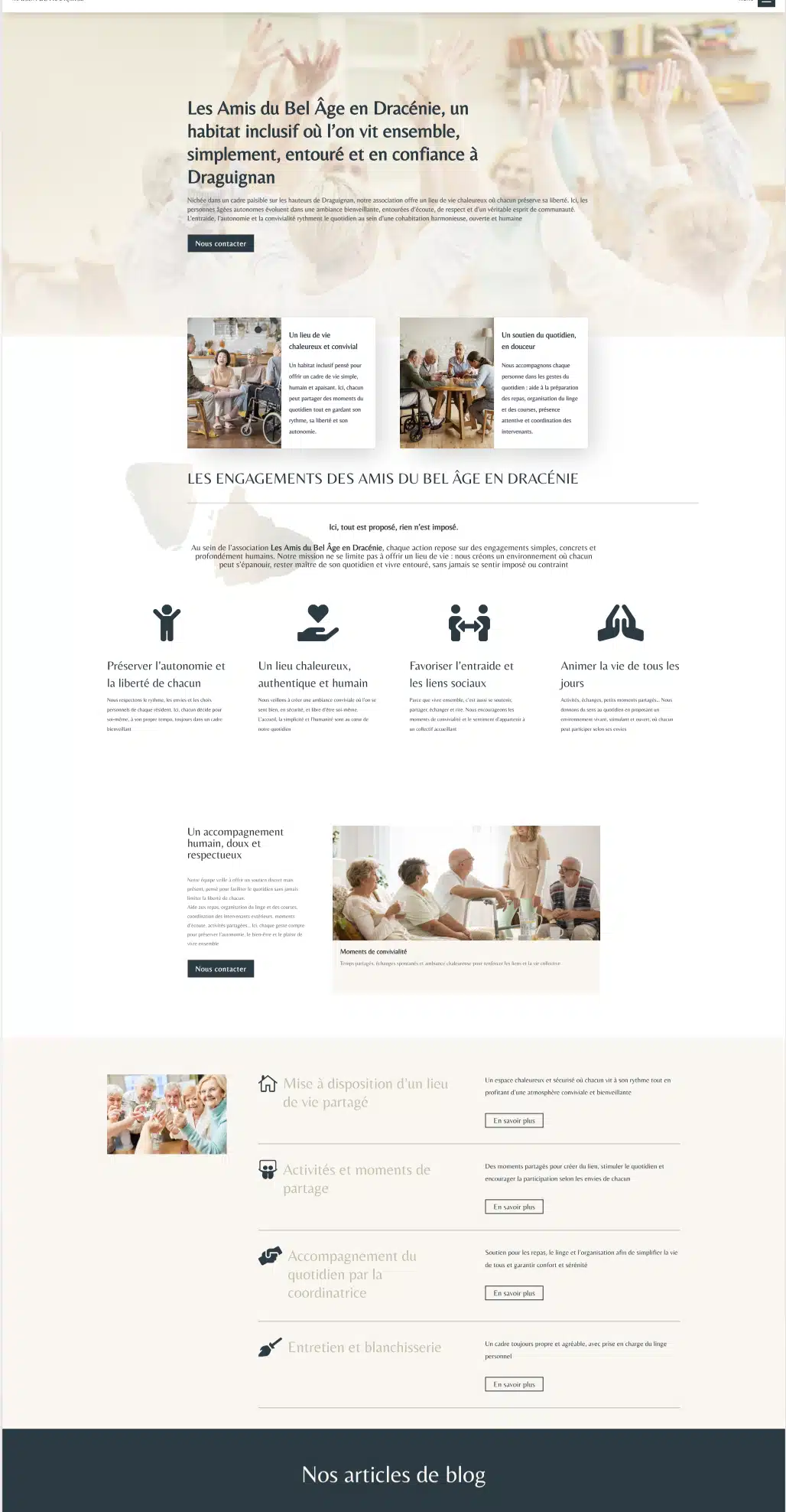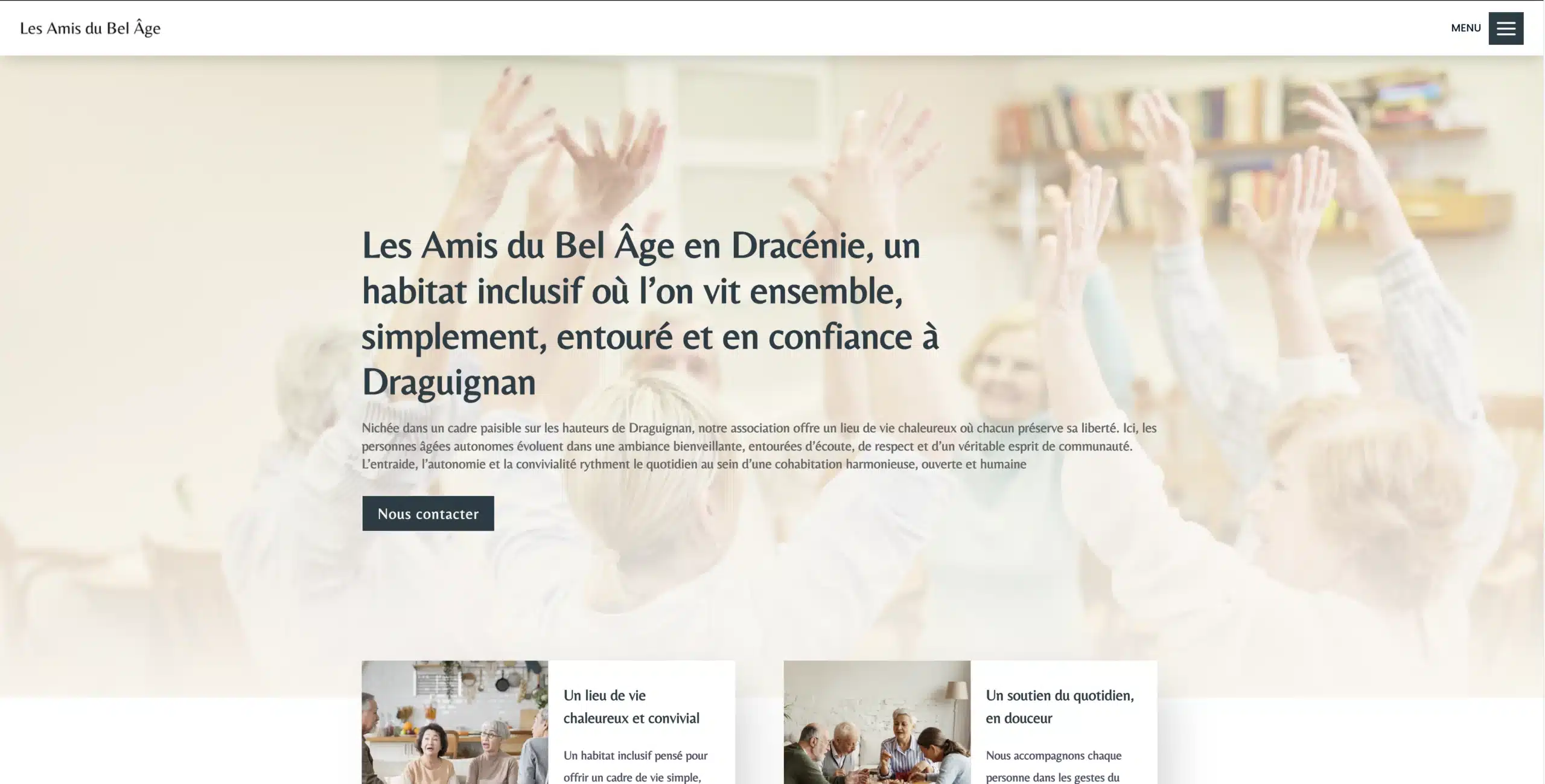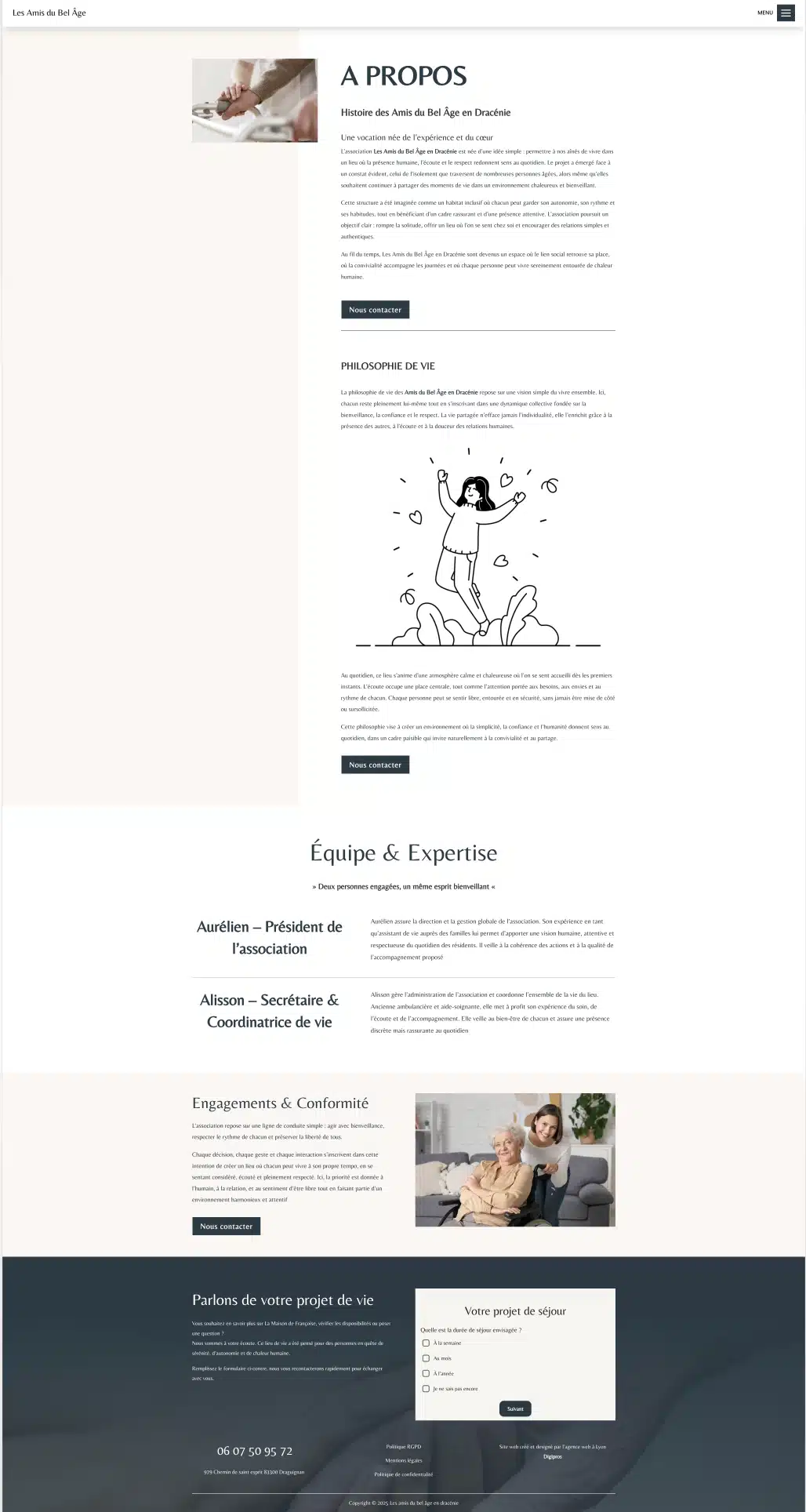 Les Amis du Bel Âge est une association dédiée à l’accompagnement des personnes âgées, axée sur la proximité, le lien social et l’échange intergénérationnel. Le brief : un site simple, accessible et apaisant, pensé pour un public senior et leurs proches.