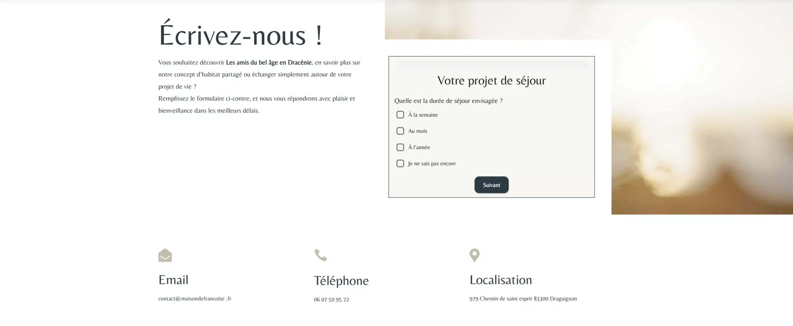 Objectif : rendre la prise de contact simple, fluide et rassurante, tout en renforçant la crédibilité de l’association.